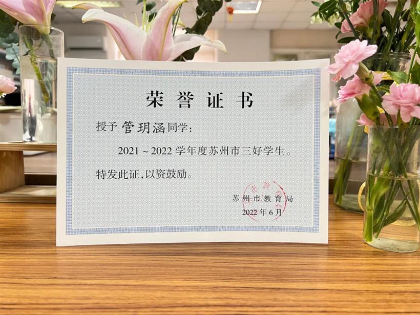 “苏州市三好学生”“苏州市优秀学生干部”