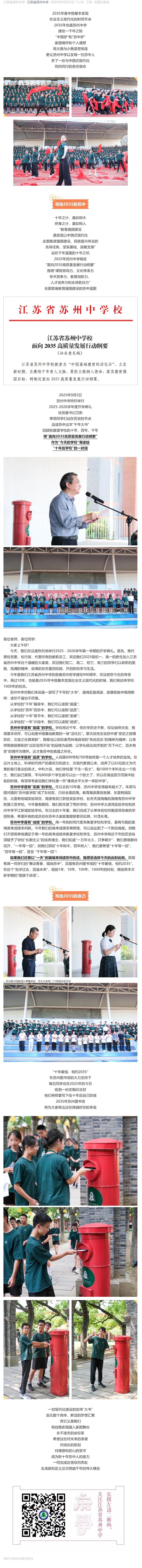 “大书小信”写给2035,苏州中学开学典礼热烈举行