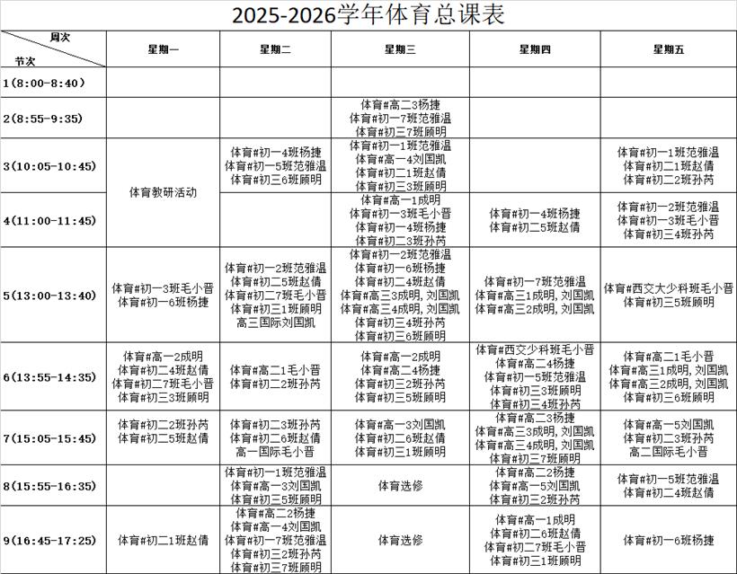 江苏省苏州中学园区校2025-2026学年体育总课表公示