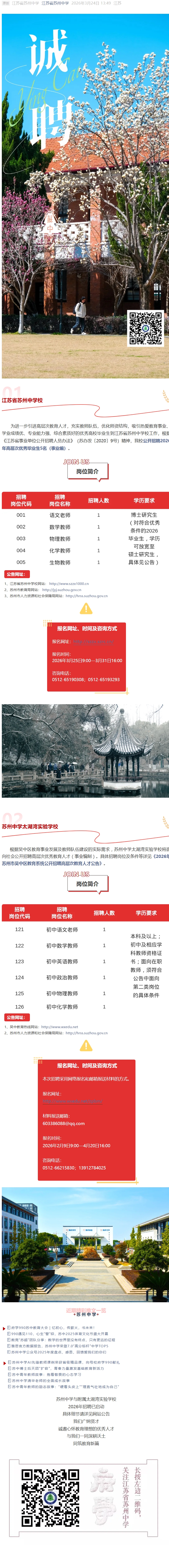 诚聘 | 苏州中学与附属太湖湾实验学校2026年招聘进行中